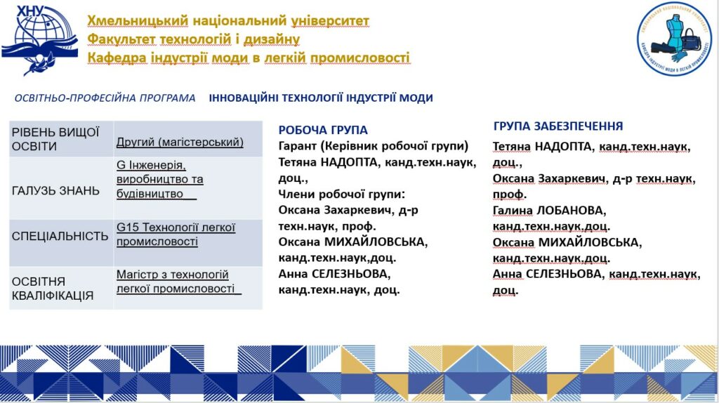 - Обговорення освітньої програми другого (магістерського) рівня вищої освіти «Інноваційні технології індустрії моди»3 квітня 2026 року на кафедрі індустрії моди в легкій промисловості відбулося обговорення проєкту освітньої програми «Інноваційні технології в індустрії… Читати далі »Обговорення освітньої програми другого (магістерського) рівня вищої освіти «Інноваційні технології індустрії моди»