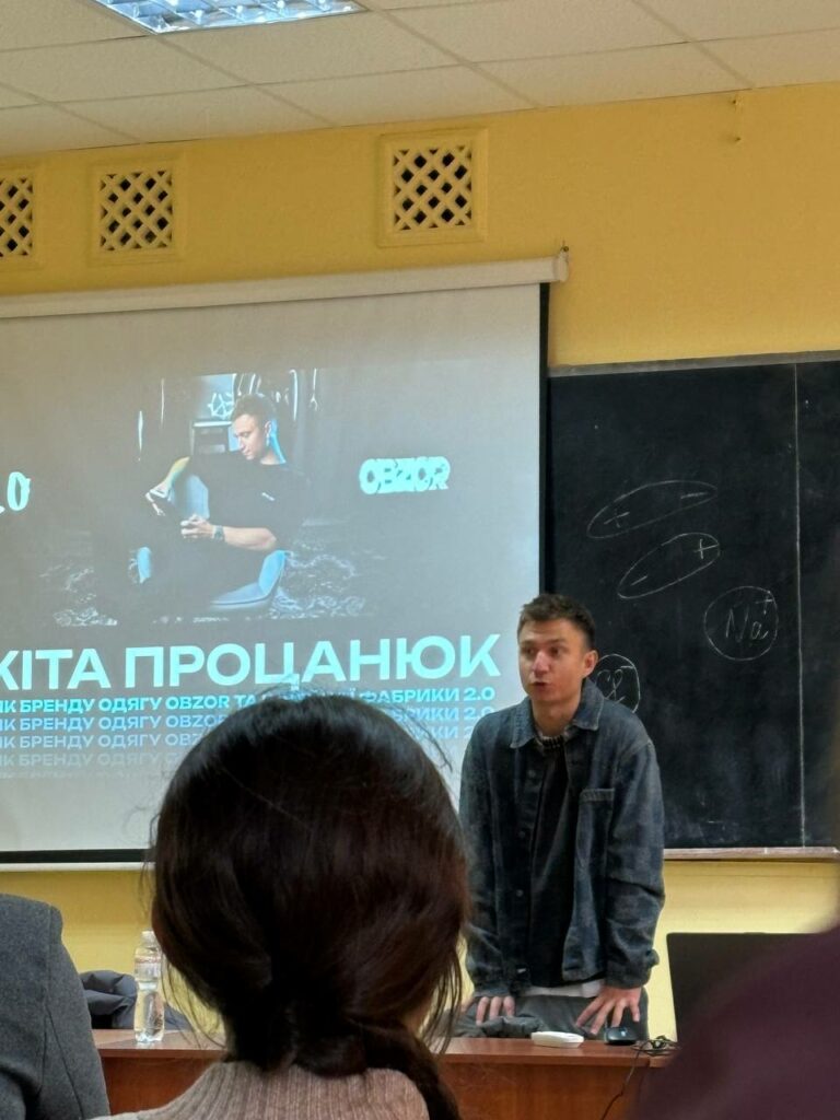 18 листопада 2025 року відбулася зустріч студентів з Нікітою Процанюком, молодим підприємцем, співвласником швейної фабрики 2.0 м. Хмельницького.